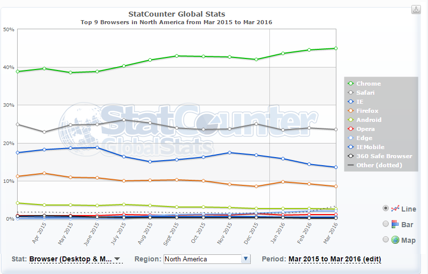 We test dotPhoto with Chrome, Firefox, Safari and Microsoft Edge. Chrome is the most widely used browser in North America for both desktop and mobile devices. dotPhoto operates best on Chrome. To install Chrome: https://www.google.com/chrome