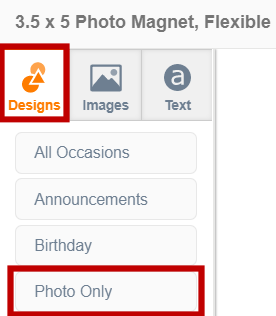 - Under Designs, choose the layout you want. For no design, choose Photo Only.