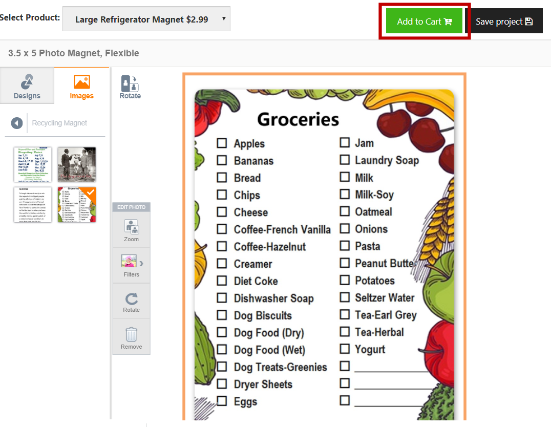 Try our info magnets that let you add a photo to the top and type information in the bottom. Make magnets for birthdays, phone numbers, recycling dates, or whatever you want! Use the Memory Magnet design under All Occasions.