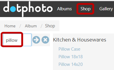 2. Tap the Shop menu on top, and either tap Pillow Case under Kitchen & Housewares, or search for Pillow and then tap Pillow Case